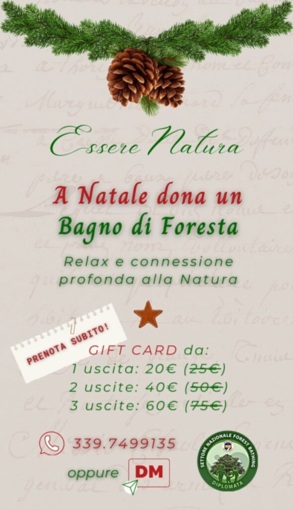 Queste Immersioni in Natura, condotte da istruttrice qualificata in Forest Bathing*, sono un’ottima occasione per prenderci quel tempo, che spesso fatichiamo a trovare, per riscoprire un contatto profondo con noi stessi e con il mondo naturale di cui siamo parte.