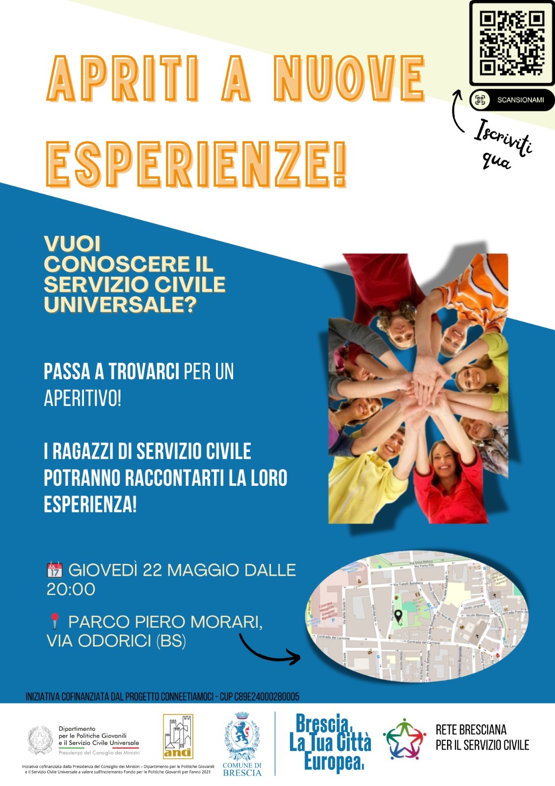 La Rete Bresciana del Servizio Civile, organizza una serata per promuovere il Servizio Civile, un’occasione per capire come funziona questa opportunità, fare domande a chi ha partecipato e bere un aperitivo (gratis!) insieme.