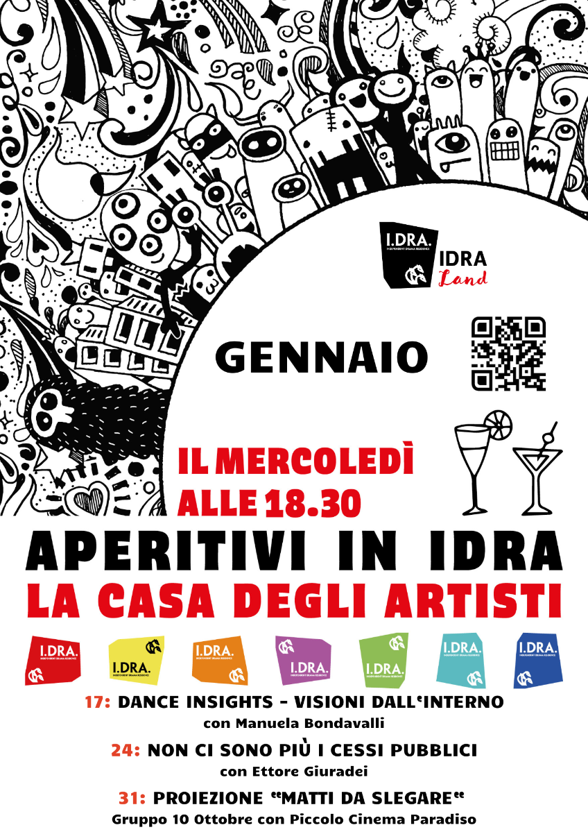 L’aperitivo con gli artisti di IDRA Teatro ha l’obiettivo di creare uno spazio di dialogo tra la comunità, con musica, spettacoli, incontri e proiezioni cinematografiche.