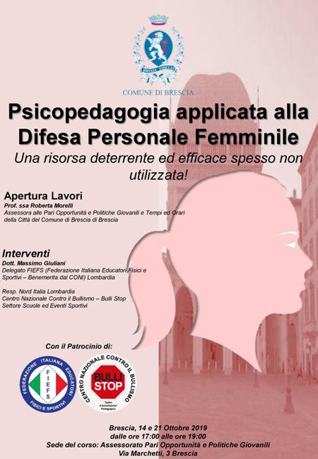 L’Assessorato alle Pari Opportunità e Politiche Giovanili del Comune di Brescia, in collaborazione con il Centro Nazionale contro il Bullismo – Bulli Stop e la FIEFS, propone 2 serate dedicate alla difesa personale, per tutte le donne.
